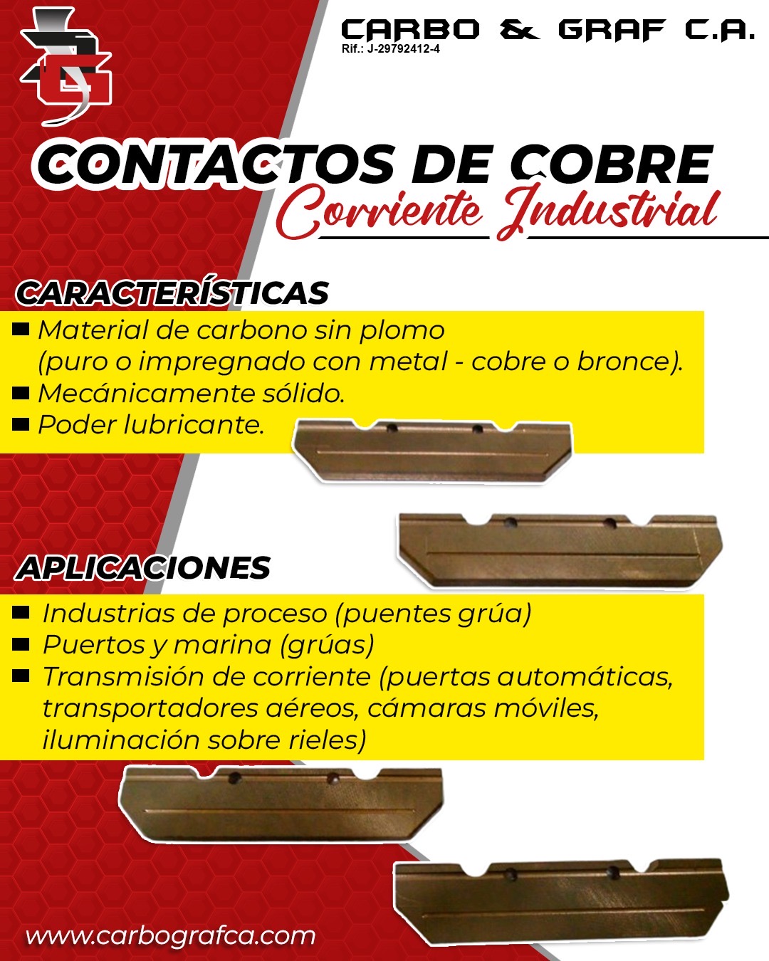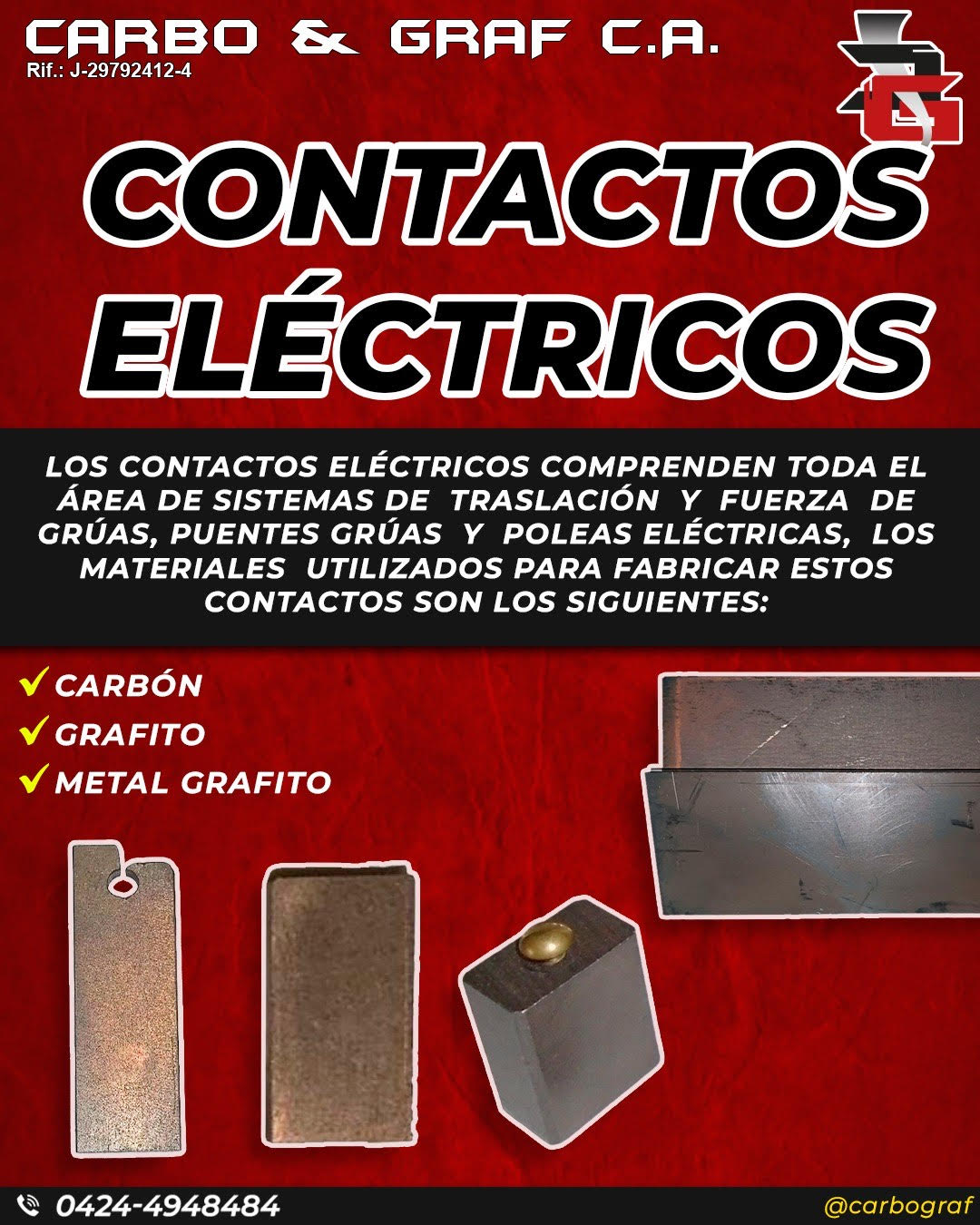 Los contactos eléctricos comprenden toda el área de sistemas de traslación y fuerza de grúas, puentes grúas y poleas eléctricas, los materiales utilizados para fabricar estos contactos son los siguientes: