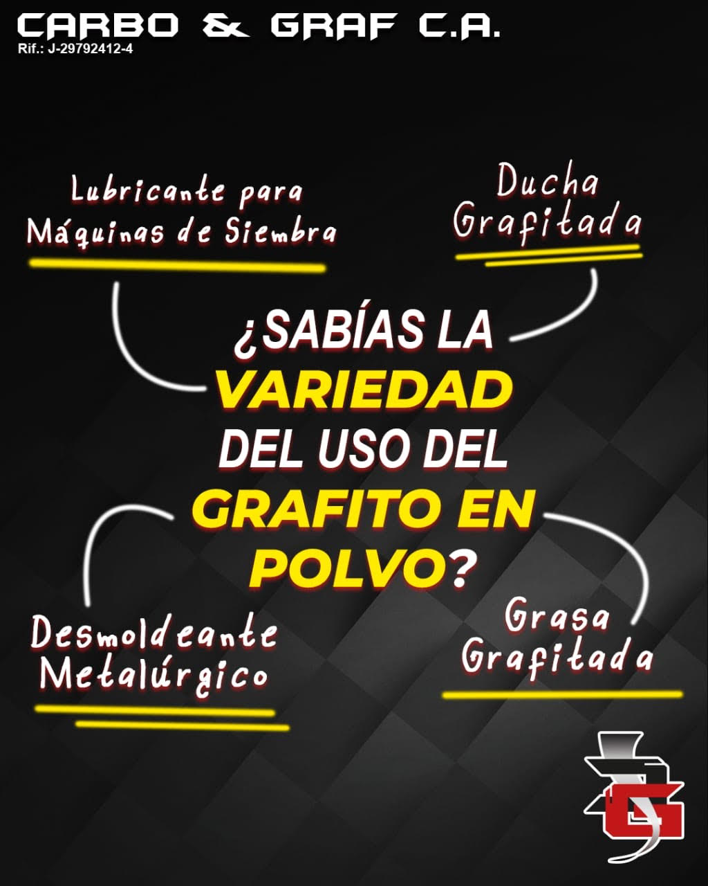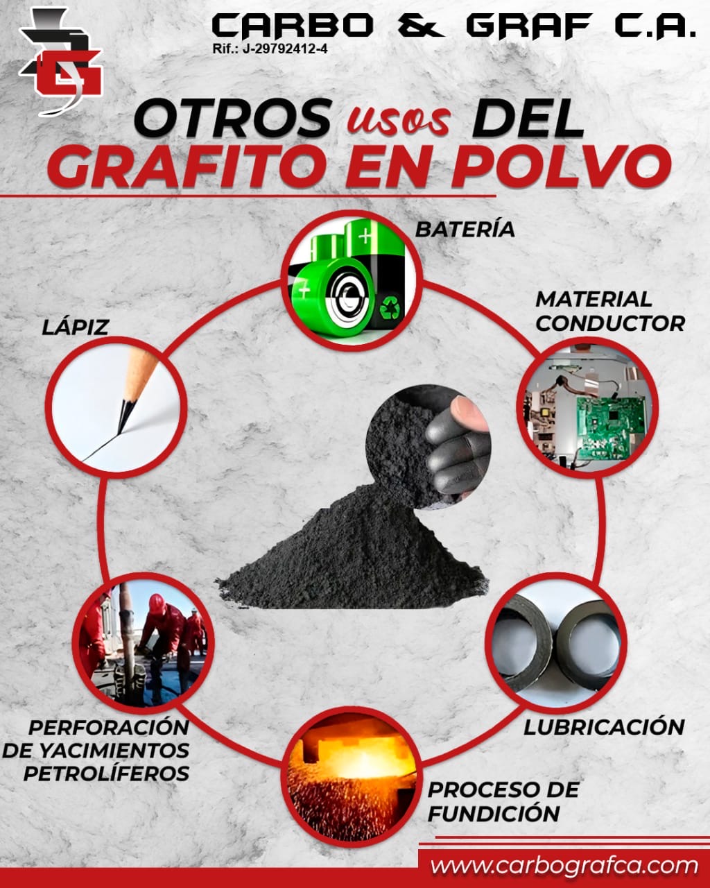 Debido a la estabilidad de las propiedades lubricantes y térmicas del grafito en polvo, lo hace apropiado para un amplio rango de aplicaciones en el campo industrial especialmente en la elaboración de Desmoldeantes de metales caliente, u otros aglomerantes grasos.